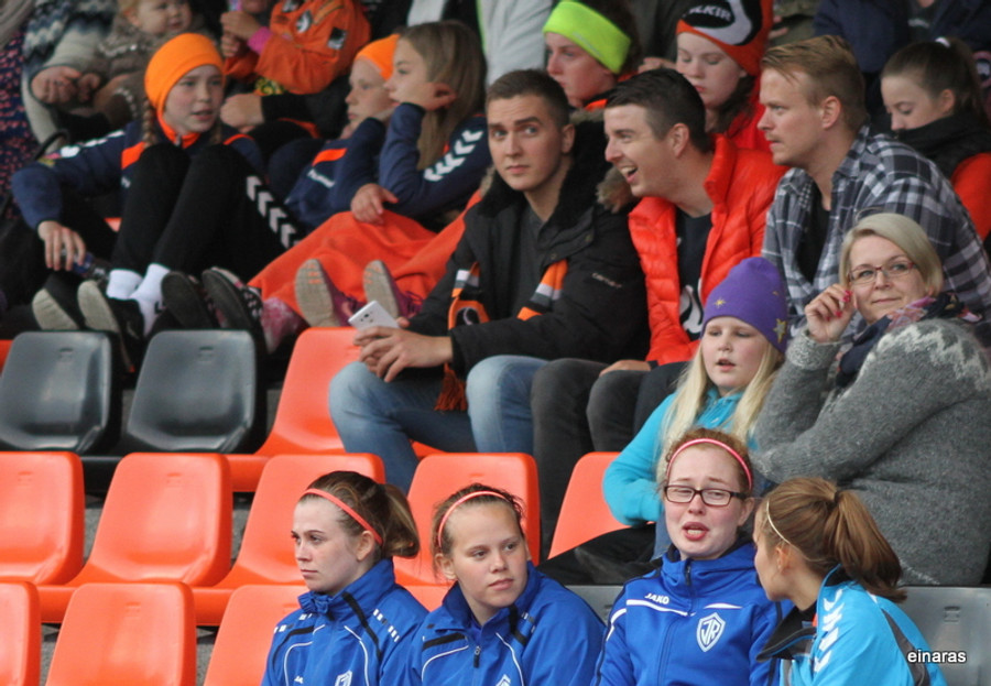 Fylkir á aukaspyrnu. Tinna tekur. Boltinn fer svo í smá loftdans á milli leikmanna og endar svo fyrir framan Gaul sem þarf að hafa sig alla við að verja frá Fylkismanni sem pressaði stíft á hana.