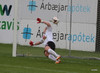 Guðmunda Brynja var einn inn í teignum og virtist eins og hún væri ein og óvölduð. Skallinn var fastur og góður en framhjá.