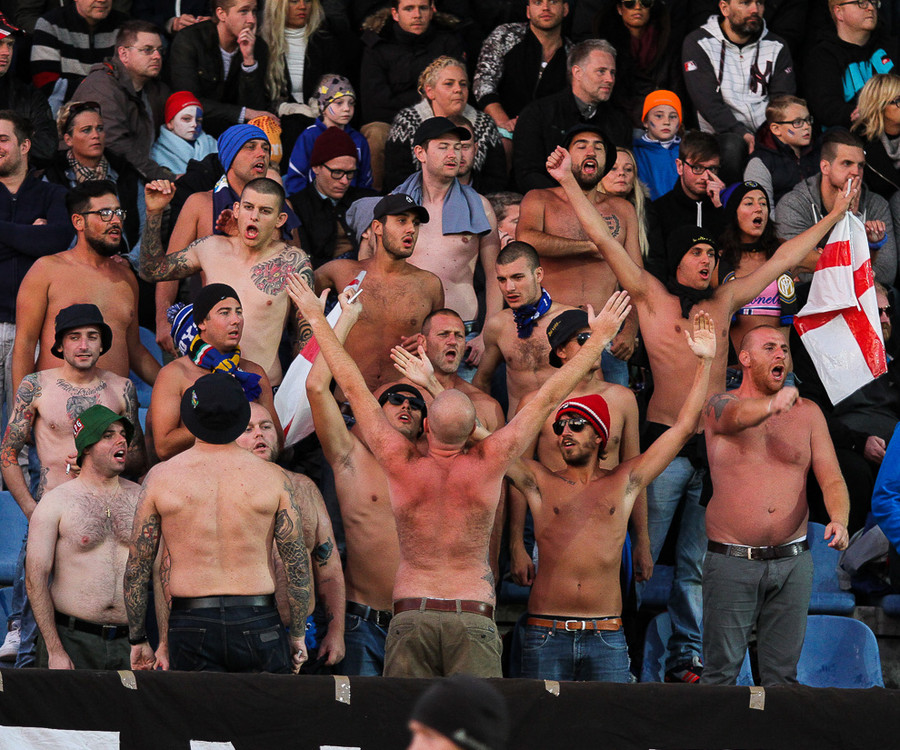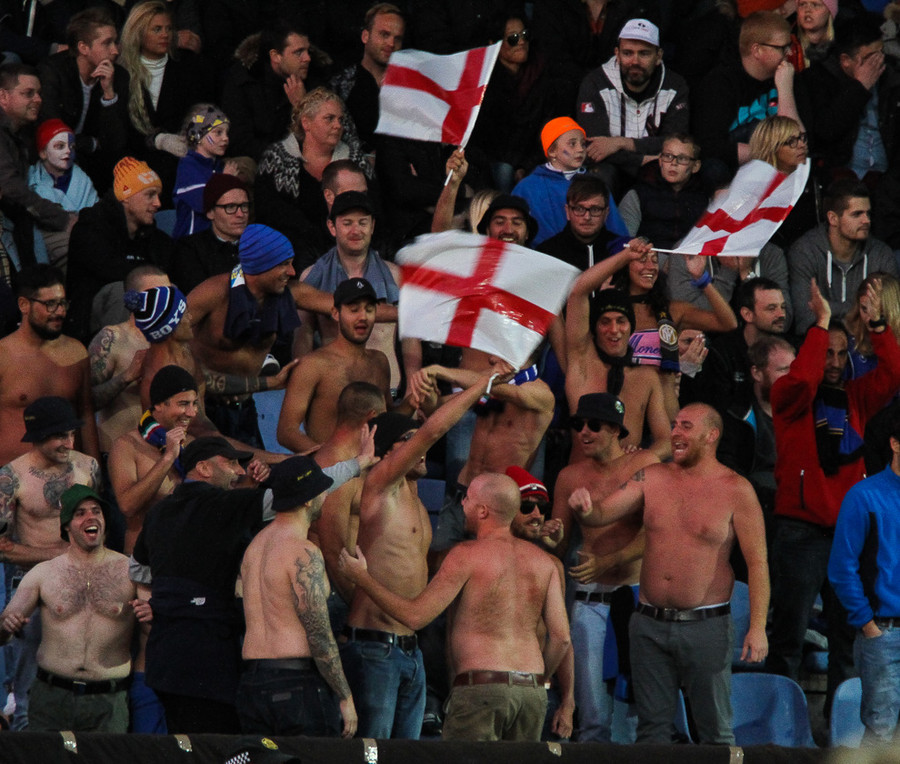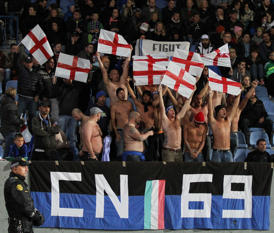 Það er í alvörunni íslenskir rasshausar á leiknum í Inter búning að halda með þeim