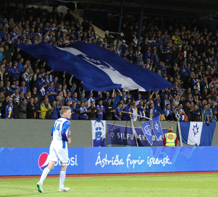 Gríðarlegt magn af fólki mætt á völlinn, það er ekki þessi klassíski Íslendingur í fólkinu, týpan sem mætir fimmtán mínútum of seint.