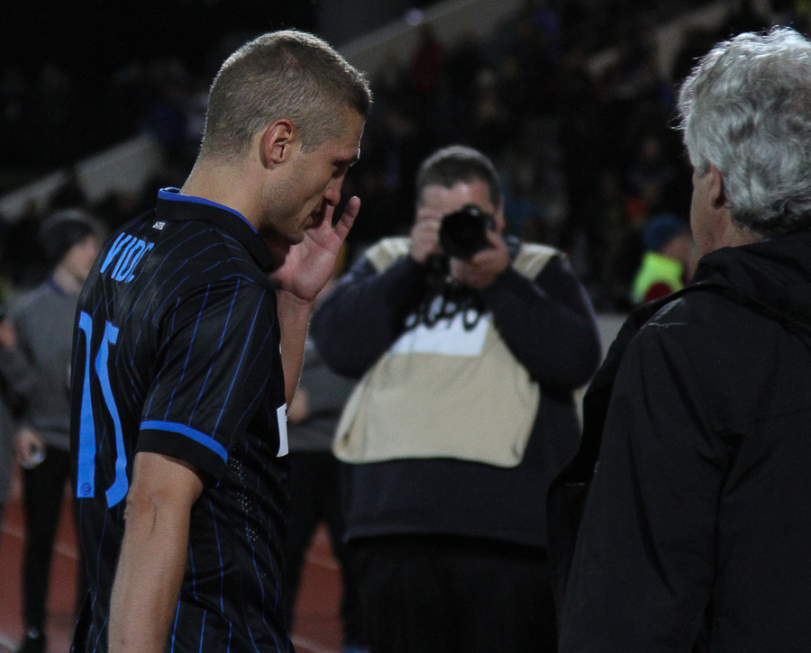 Atli Jó með laglega tæklingu og svo veit ég ekki hvort hann ætlaði að senda boltann eða skjóta en hann fór alla vega beint á Handanovic.