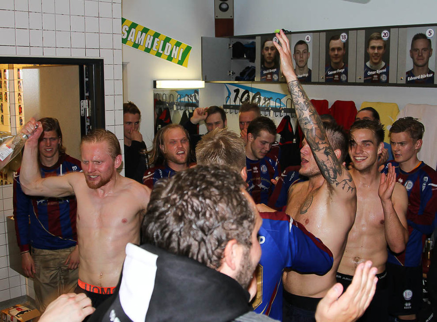 Leiknismenn kunna að fagna duglega og ef þeir fara upp í kvöld má búast við einni slíkri stund. Þegar þeir unnu KR í úrslitaleik Reykjavíkurmótsins í fyrra var mikið fagnað, og svo mikið að einhverjir leikmenn fóru í Breiðholtslaug að næturlagi og héldu partýinu gangandi. Þar fundu öryggisverðir Öryggismiðstöðvarinnar svo bikarinn morguninn eftir og spurning hvort aukin gæsla verði við Breiðholtslaug í kvöld.