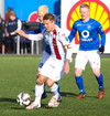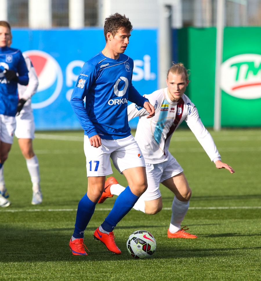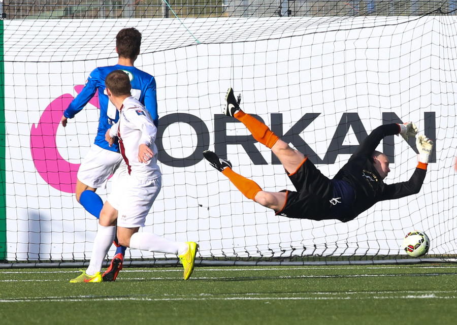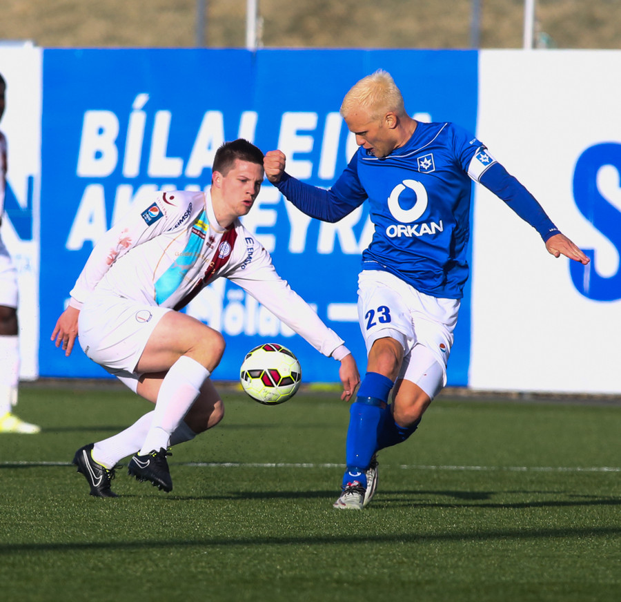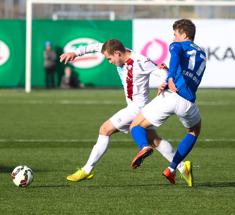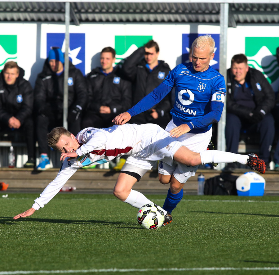 Mikil barátta milli Heiðars og Fomen. Nú var Fomen á mikilli siglingu en Heiðar sparkaði hann niður.