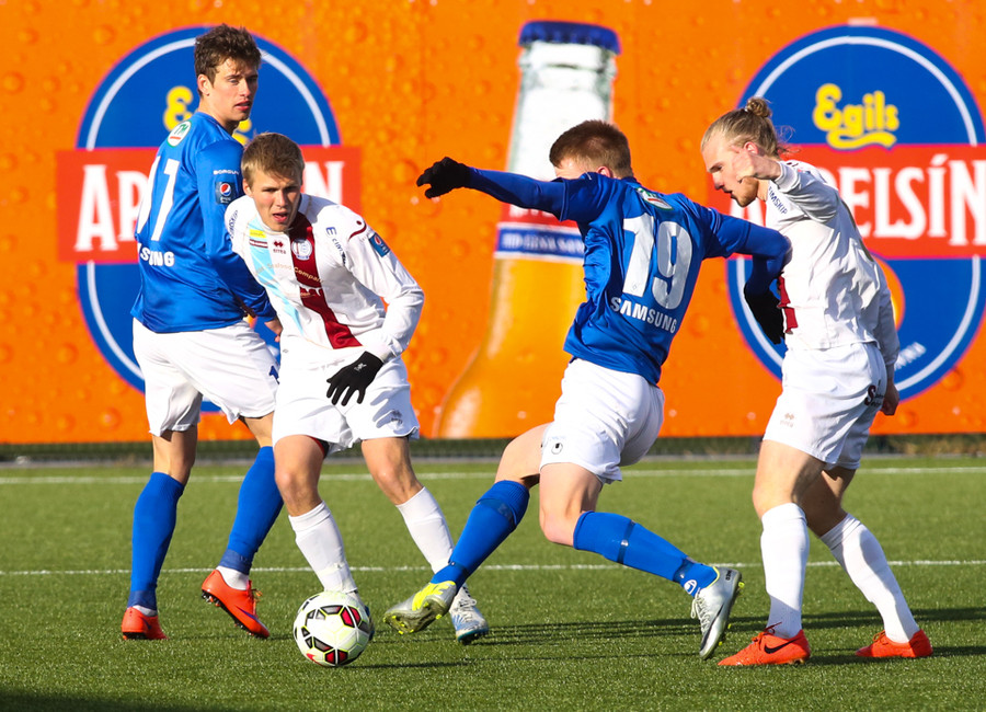 Komin tvö mörk í 19:15 leikjunum. KR yfir gegn Fjölni og Víkingar yfir á Skaganum.