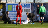 Leiknismenn koma boltanum í netið en markið er ekki dæmt gilt! Ívar dómari telur að brotið hafi verið á Gunnari Nielsen í markinu!