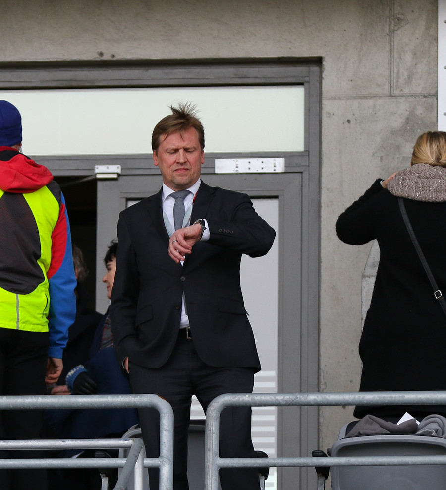 Enginn Ólafur Ragnar á vellinum í dag. Sigmundur Davíð mættur. Situr með Geir og Rúnari Vífli. Heiðursstúkan #fotboltinet