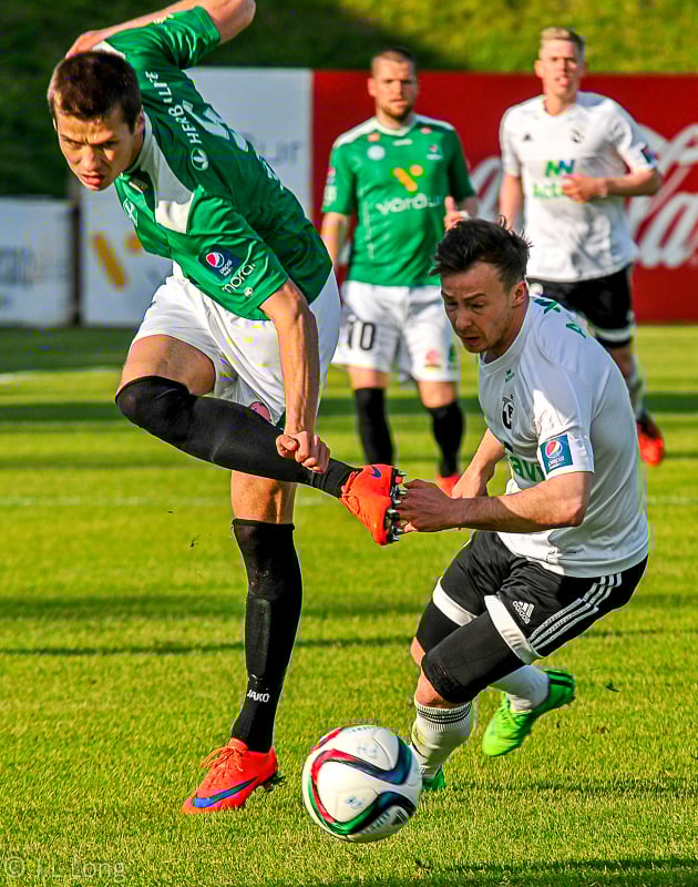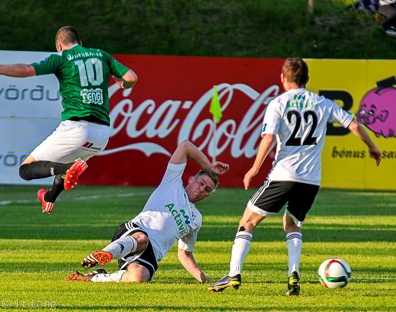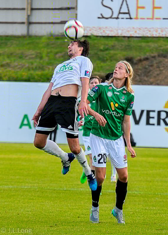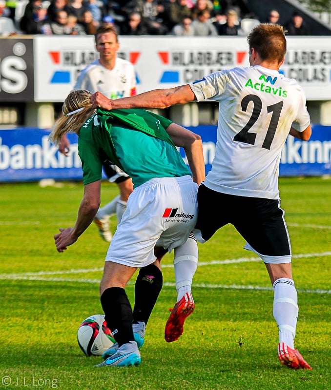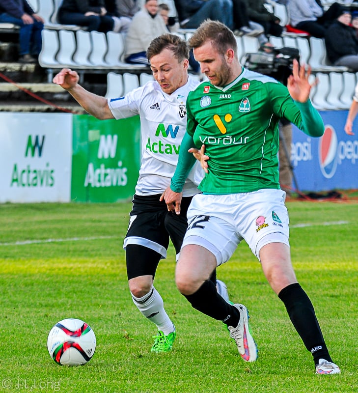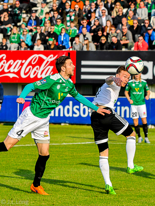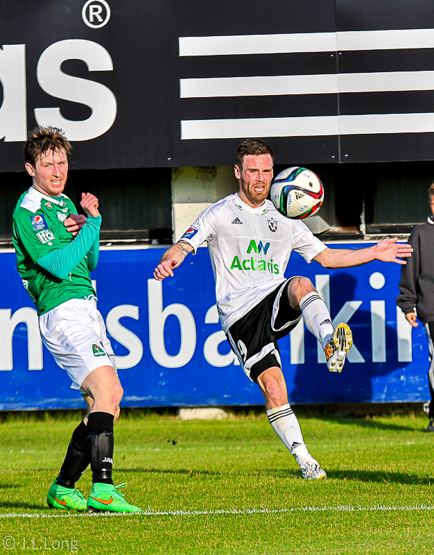 Jón Ragnar hefur betur í baráttunni við Guðjón Pétur innan teigs. Guðjón vill aftur víti en ekkert dæmt. Held að Gunnar hafi gert rétt þarna.