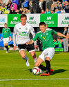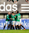 Veislan er byrjuð. Blikar byrja með boltann og sækja í átt að Góu. FH-ingar sækja í átt að Víðistaðatúninu.