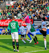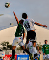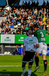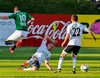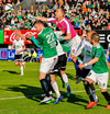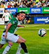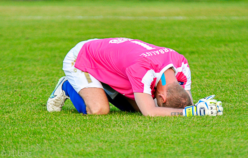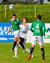 Ellert Hreinsson með laflausan skalla beint á Róbert eftir hornspyrnu frá Guðjóni Pétri.