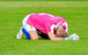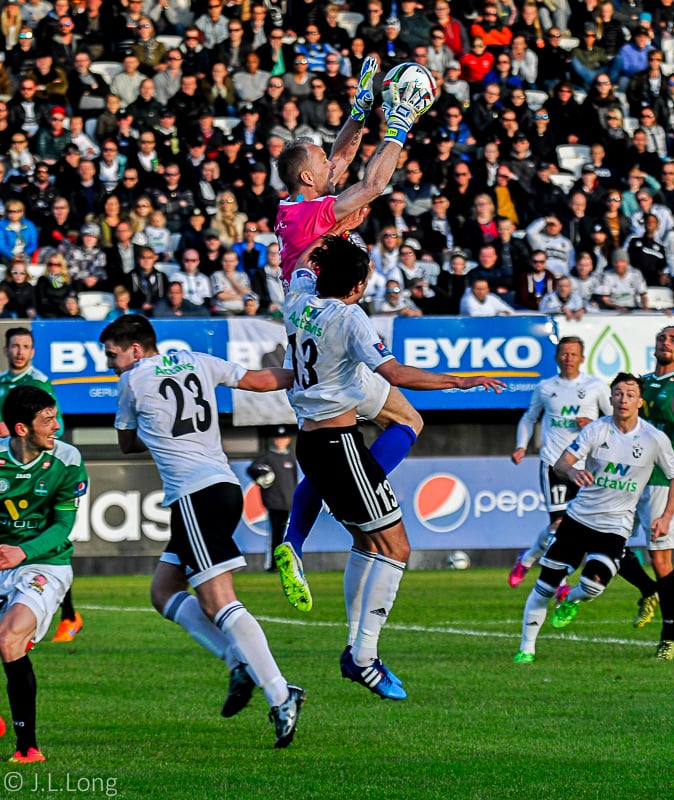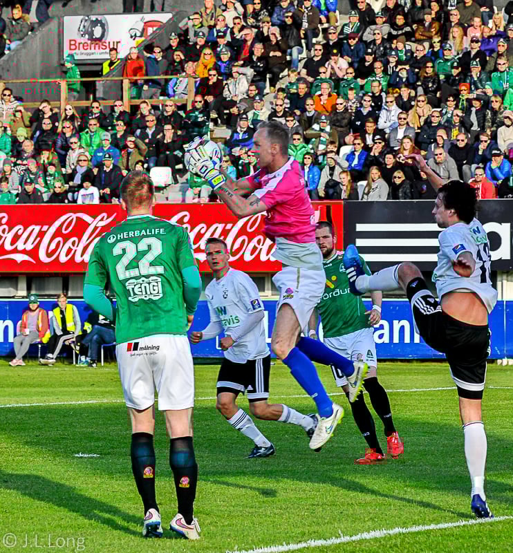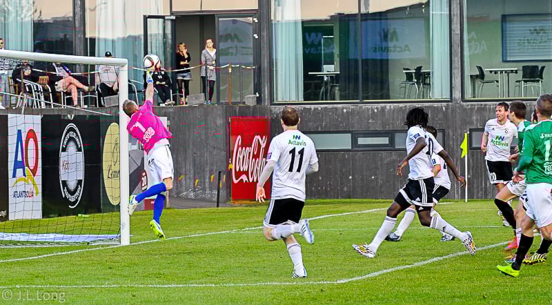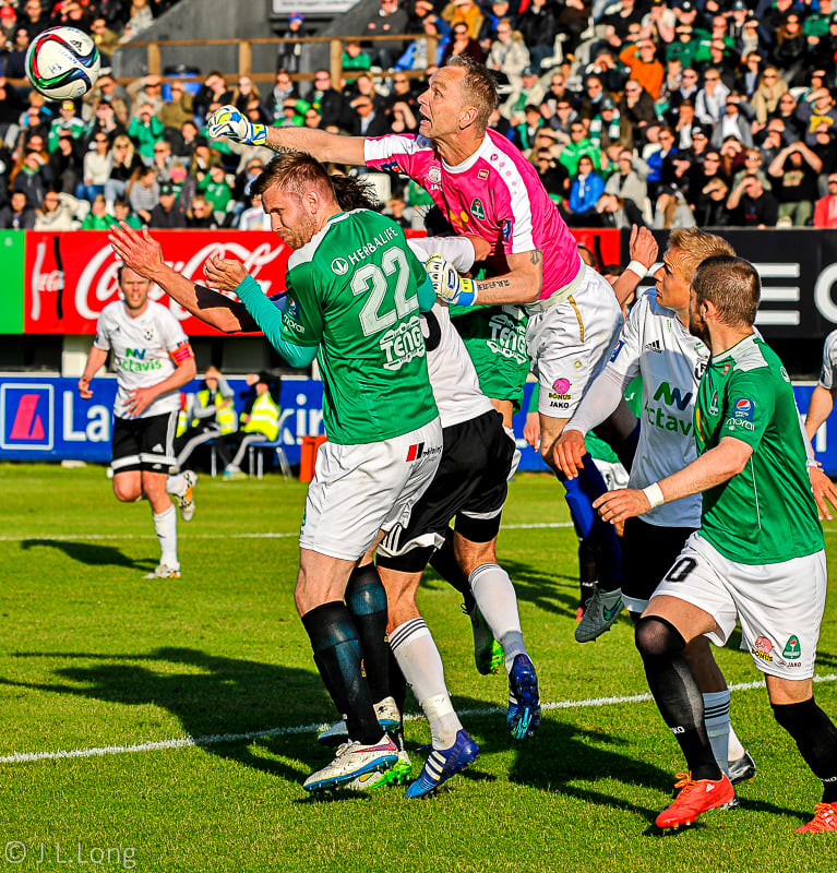 Var svo stálheppinn fyrir 1-2 mínútum, þegar hann missti boltann frá sér eftir slaka móttöku en náði að hreinsa boltann frá á síðustu stundu, áður en Kristján Flóki náði til boltans.