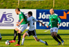 Brynjar Ásgeir með skot vel fyrir utan teiginn en beint á Gunnleif í markinu sem grípur boltann.