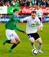 Steven Lennon með fyrirgjöf sem bæði Atli Guðnason og Brynjar Ásgeir missa af. 12 mínútur eftir.