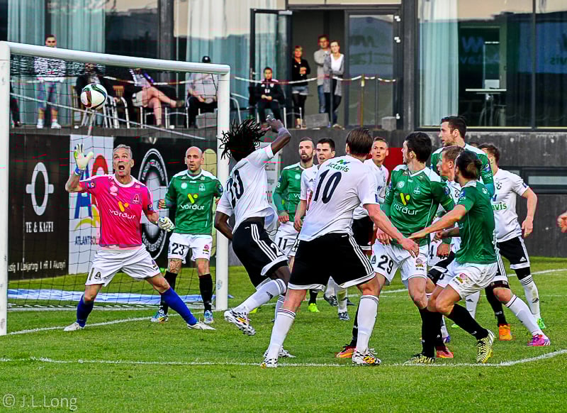 Þarna var hætta á ferðum, Böðvar Böðvarsson var kominn upp að endalínunni, átti stórgóða fyrirgjöf sem Steven Lennon nær til, en nær ekki að stjórna boltanum almennilega og að lokum hreinsar Elfar Freyr frá.