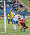 Hætta við mark heimamanna, langur bolti og Rajko í skógarhlaupi en þeir ná að hreinsa boltanum í burtu