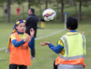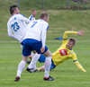 heimamenn sækja þétt að marki Víkinga sem standa varla í lappirnar en grasið er blautt hér fyrir norðan