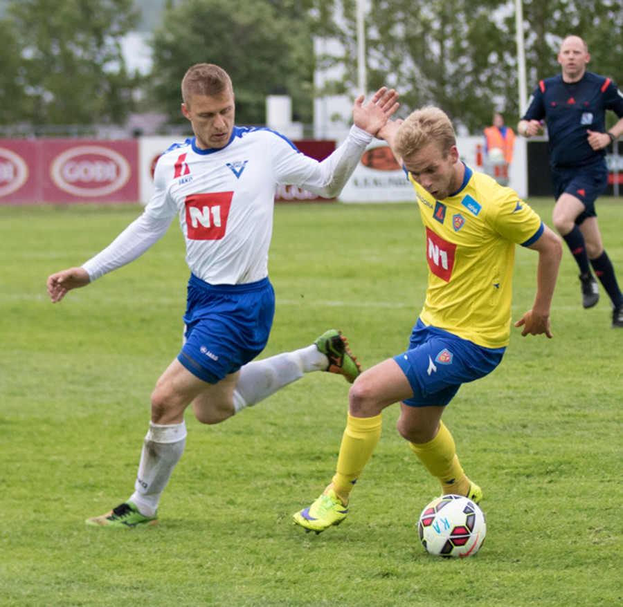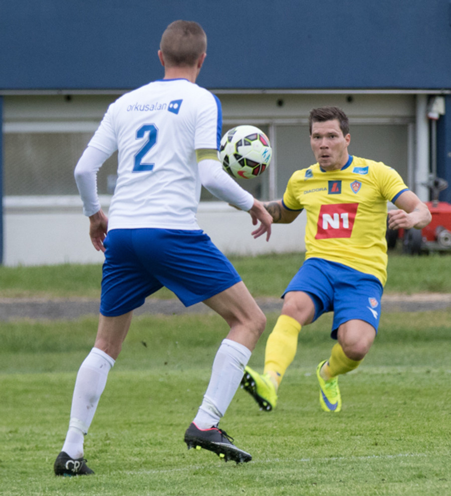Fín sending fyrir, Admir Kubat nær skallanum en þar sem hann rann til var skallinn laus og beint á Rajko