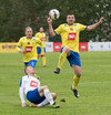 Alfreð Már á skot sem fer hátt yfir markið. Alfreð rann í skotinu en það kemur ekki á óvart miðað við völlinn