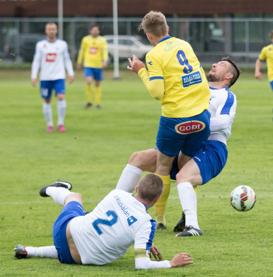 Heimamenn búnir að jafna!! eftir flott spil berst boltinn á Ben Everson sem sendir boltann fyrir þar sem Elfar er mættur til að hamra honum í netið