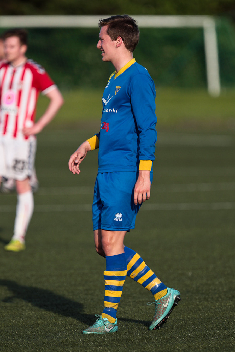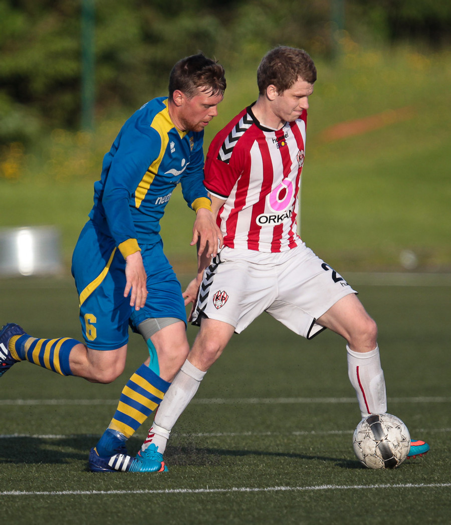 Liðin eru mætt út á völlinn. Fámennt á áhorfendapöllunum. Dómari kvöldsins kemur frá Akureyri og heitir Valdimar Pálsson.