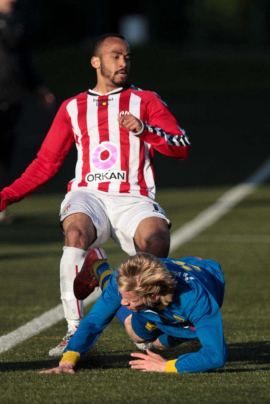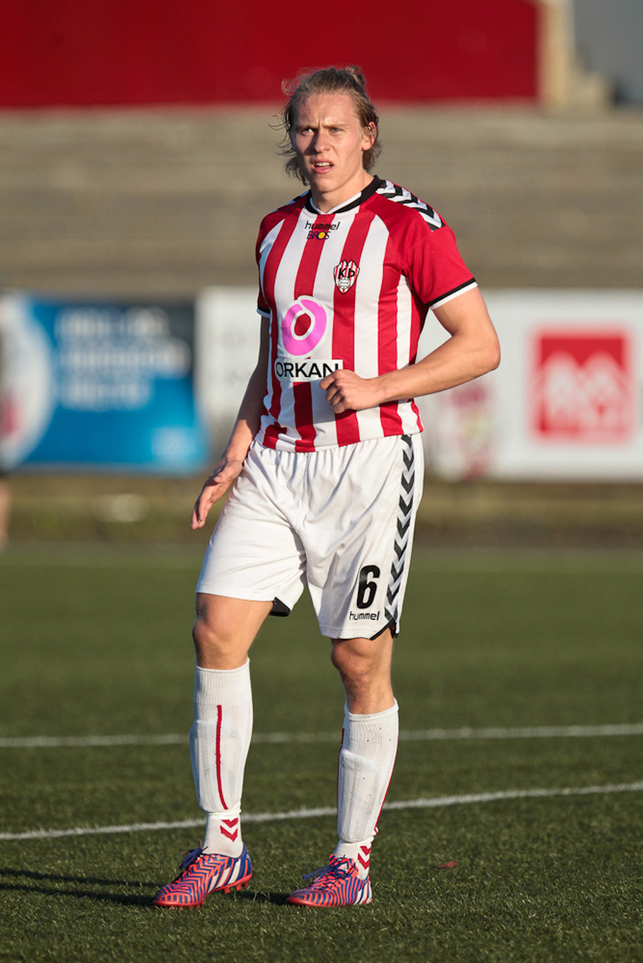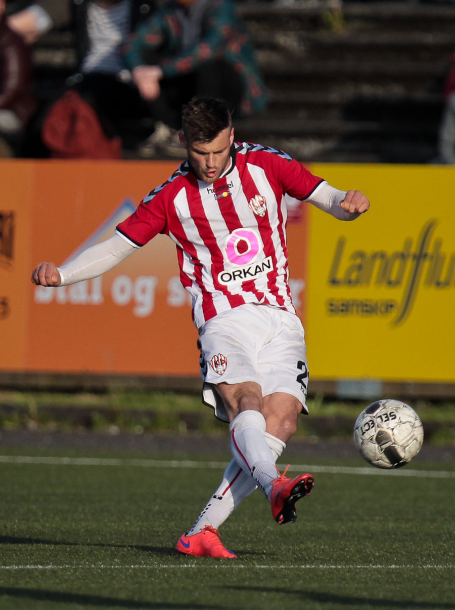Vilhjálmur Pálmason í dauðafæri!!! Fyrsta snerting hans í leiknum en hann hitti boltann herfilega frá markteignum og skot hans yfir markið!