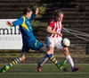 Fór af hörku í Trausta Sigurbjörnsson markvörð Þróttar sem þurfti aðhlynningu en er nú staðinn upp og heldur leik áfram.