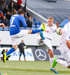 Haukur Páll með fullorðins tæklingu á Þorra og fá stjörnumenn aukaspyrnu af c.a. 20 metrum