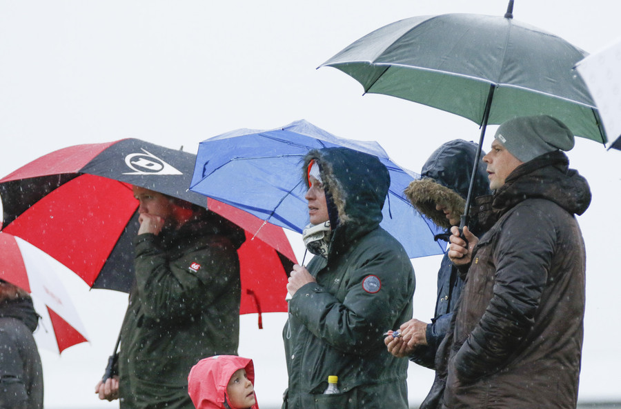 Lýsingin mín gæti orðið eitthvað sérstök því að það rignir á blaðamannaskúrinn og glerið er jaaa...ekki með rúðuþurrkur og skyggnið því orðið ansi brenglað....