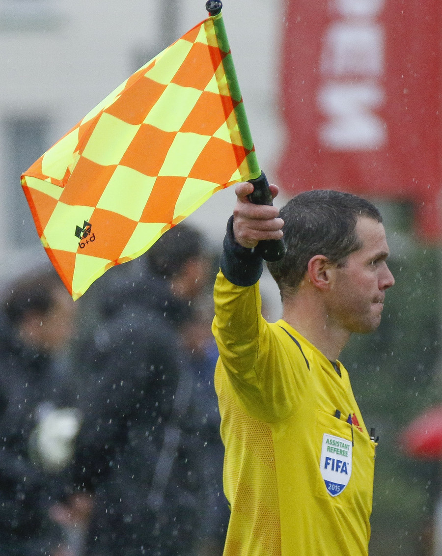 Fær gult spjald fyrir leikaraskap af ,,bestu" gerð þegar hann kastar sér í jörðinna og heldur um andlitið án þess að nokkur leiknismaður komi nálægt honum.
