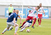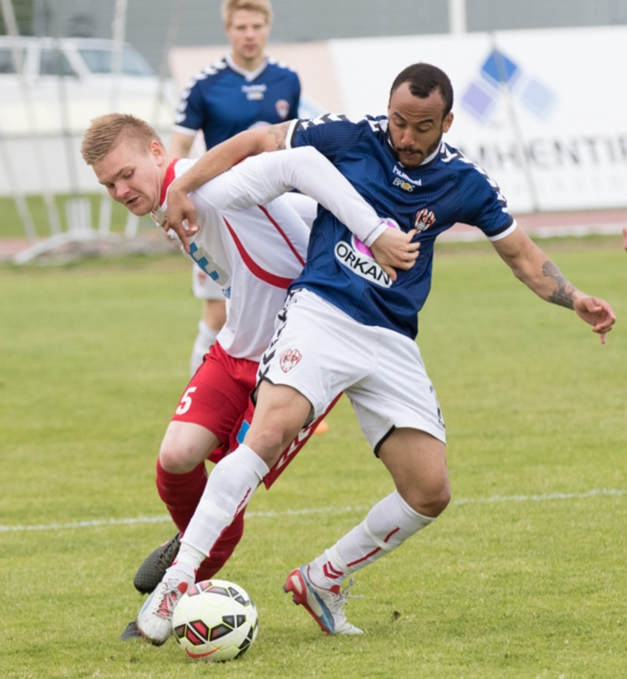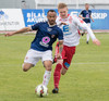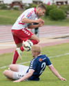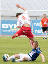 Aron Lloyd brýtur á Jóhanni Helga og aukaspyrna dæmd. Kristinn Þór Björnsson er ekki sáttur við Aron og hrindir honum í jörðina.