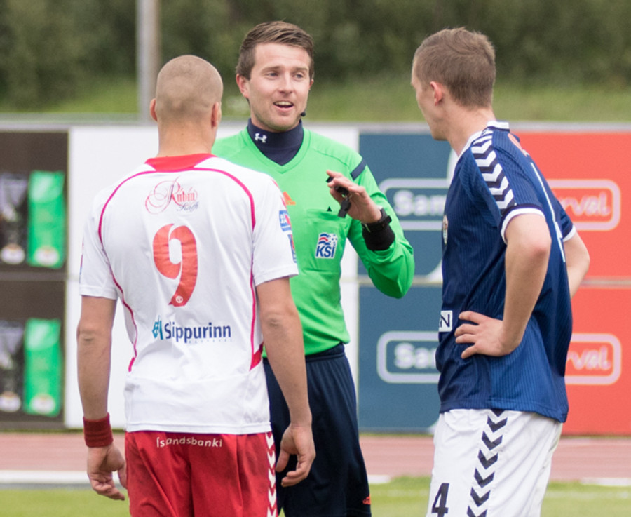 Dómari hér í dag er Vilhjálmur Alvar Þórarinsson og aðstoðarmenn hans eru þeir Sverrir Gunnar Pálmason og Halldór Vilhelm Svavarsson