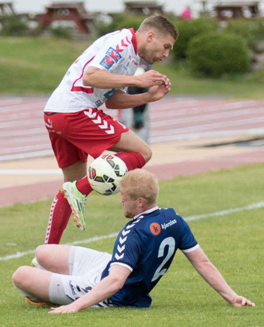 Fór harkalega í Jóhann Helga. Dómarinn lét leikinn halda áfram og spjaldaði Davíð eftir á. Flott dómgæsla