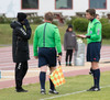 Þróttarar eiga hornspyrnu. Vilhjálmur Alvar stoppar leikinn og gefur tiltal. Það hefur verið mikið að gera hjá honum í dag