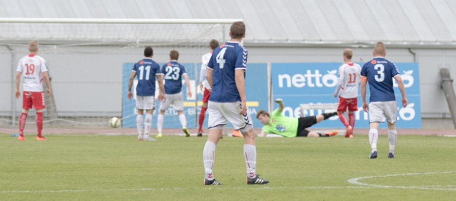 Þarna eru heimamenn stálheppnir. Gísli Páll er alltof ofarlega og Vilhjálmur Pálsson kemst í gegn en setur boltann í slánna. Hættulegasta færi seinni hálfleiks án vafa