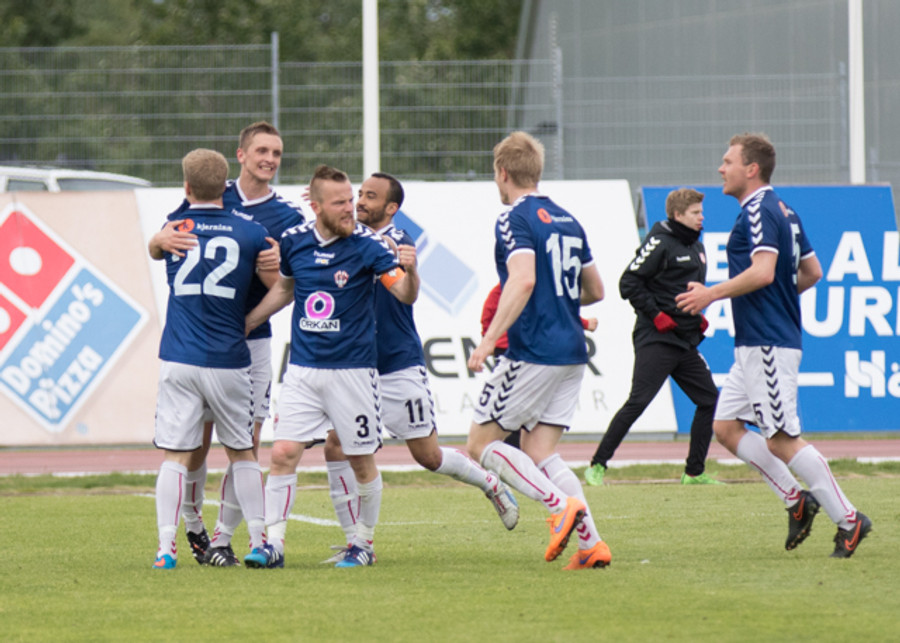 Fyrsta markið er komið!! Fyrirgjöf frá vinstri kanti og boltinn berst á Rafn sem tekur hann niður í teignum og skorar