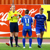 Allt í rugli hérna rétt fyrir lok fyrri hálfleiks. Biðst velvirðingar ef það eru einhverjar villur varðandi spjöld í lýsingu.