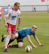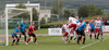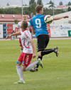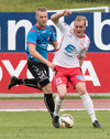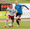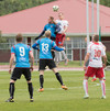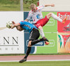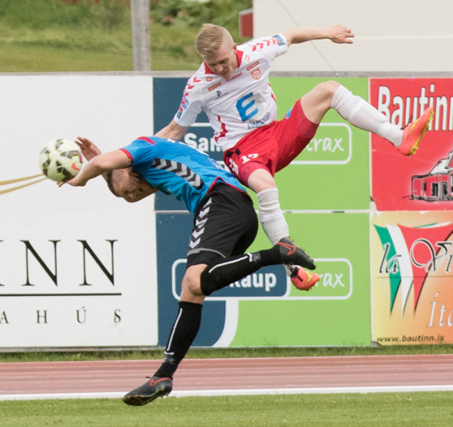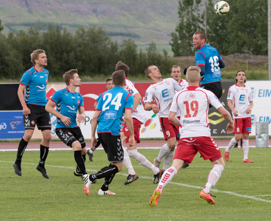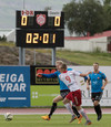 Balázs við það að komast í boltann eftir aukaspyrnu en Beitir kemst í boltann á undan