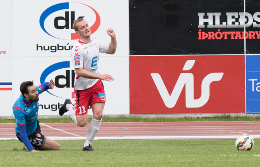 Braut á Sigurði Marinó við teiginn en ekkert varð úr aukaspyrnunni