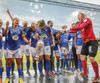 Þá er búið að leika þjóðsönginn og leikurinn fer að hefjast! Þetta verður veisla!