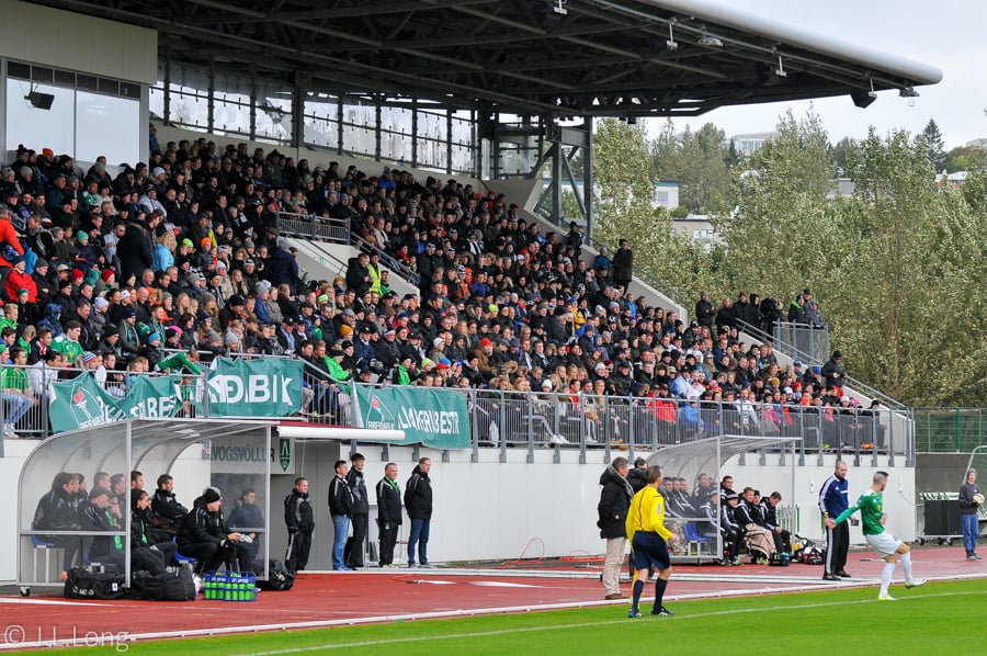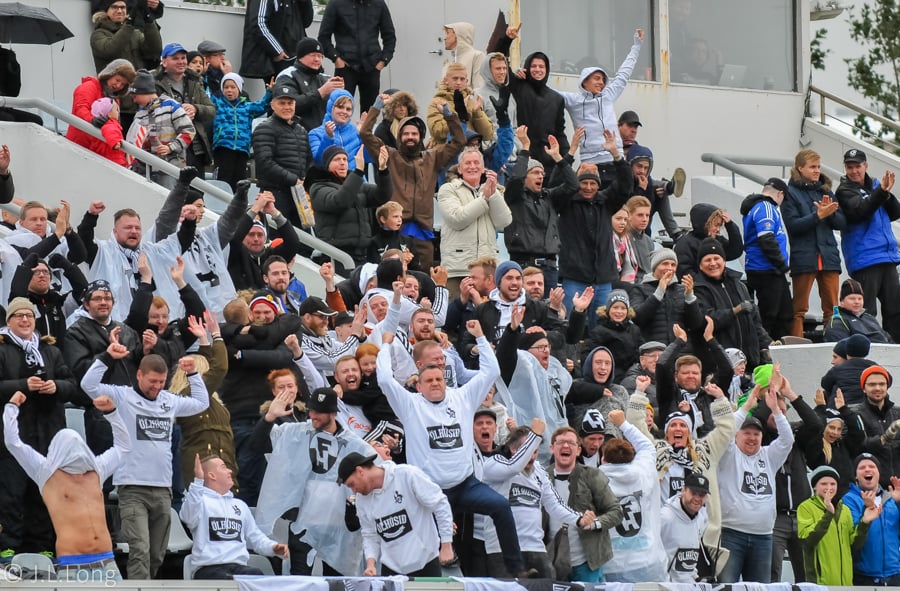 Reikna má með fjölmenni á Kópavogsvöll. Stuðningsmannaliðin hafa undirbúið sig vel, koma vel klædd, hlý og kát á allan hátt.