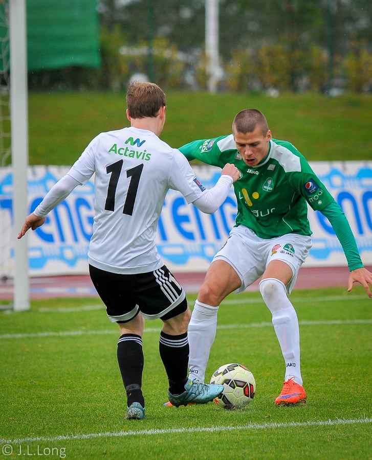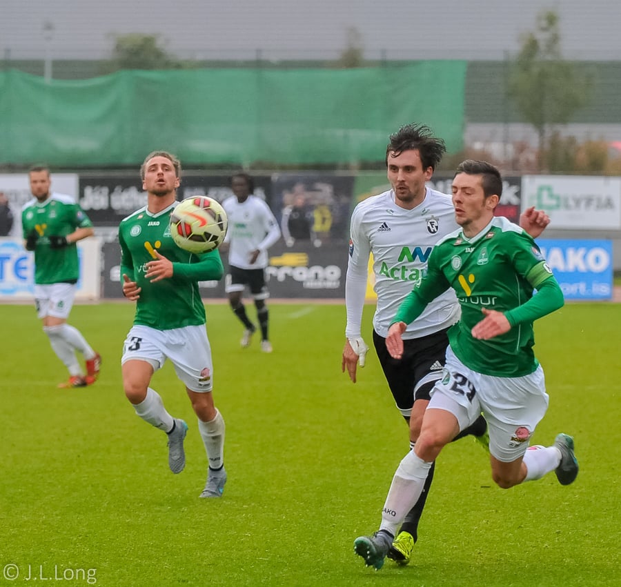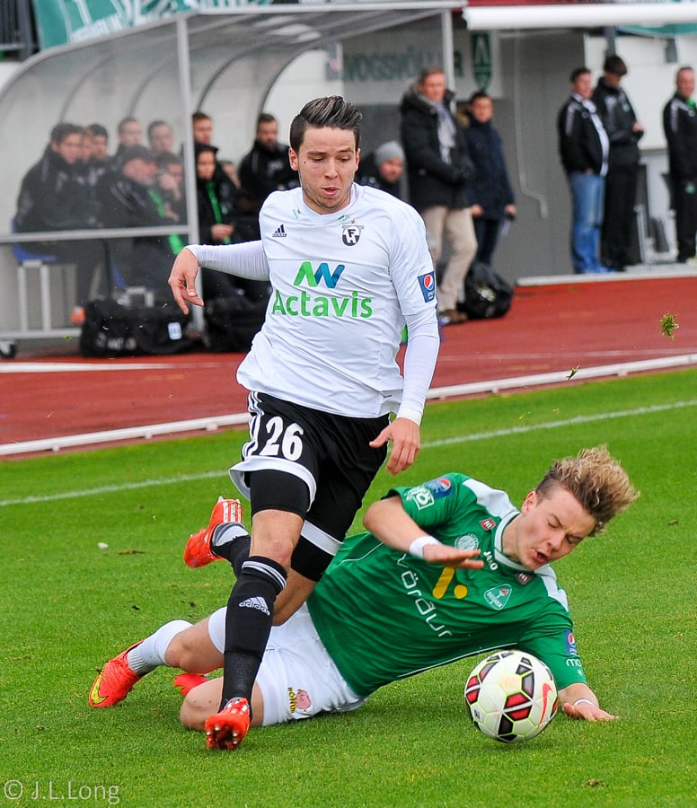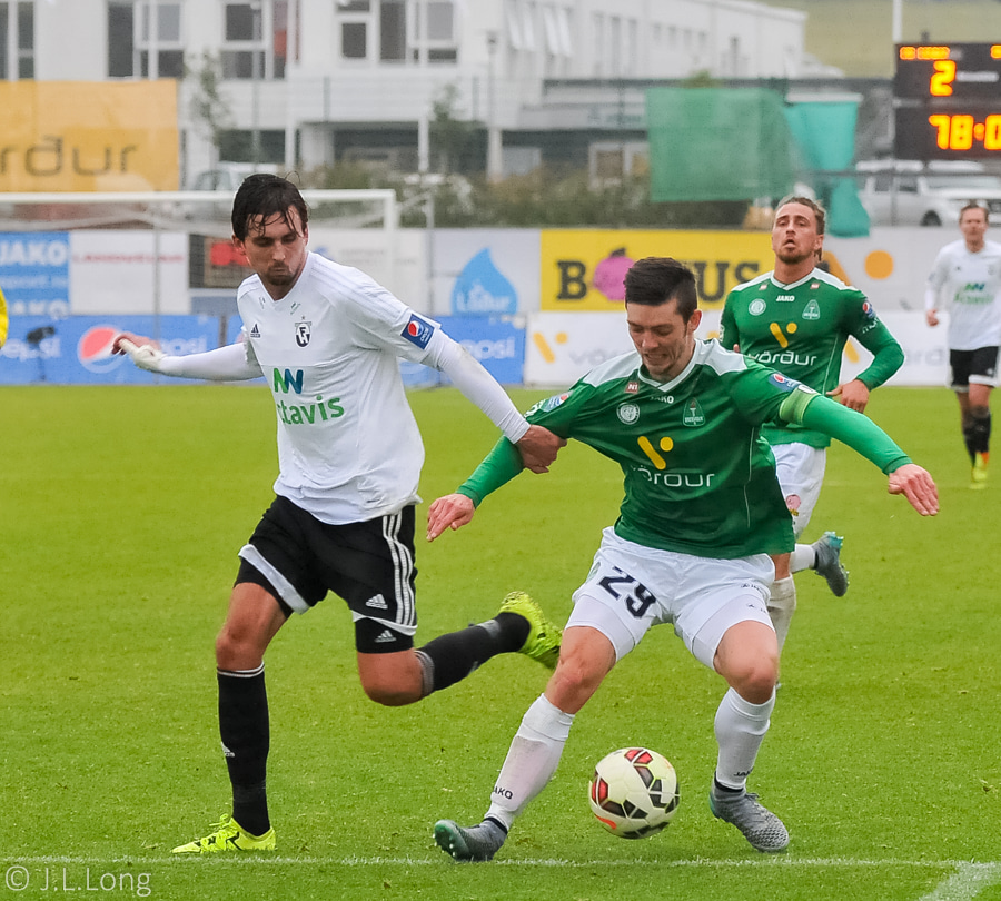 Kristinn búinn að komast á bakvið Hendrickx hér í tvígang en sendingarnar misheppnaðar.