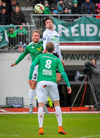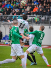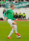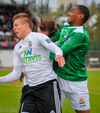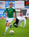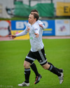 Atli Sigurjóns fær nógan tíma til að snúa boltanum inn á markteig þar sem Jonathan Glenn verða ekki á nein mistök.