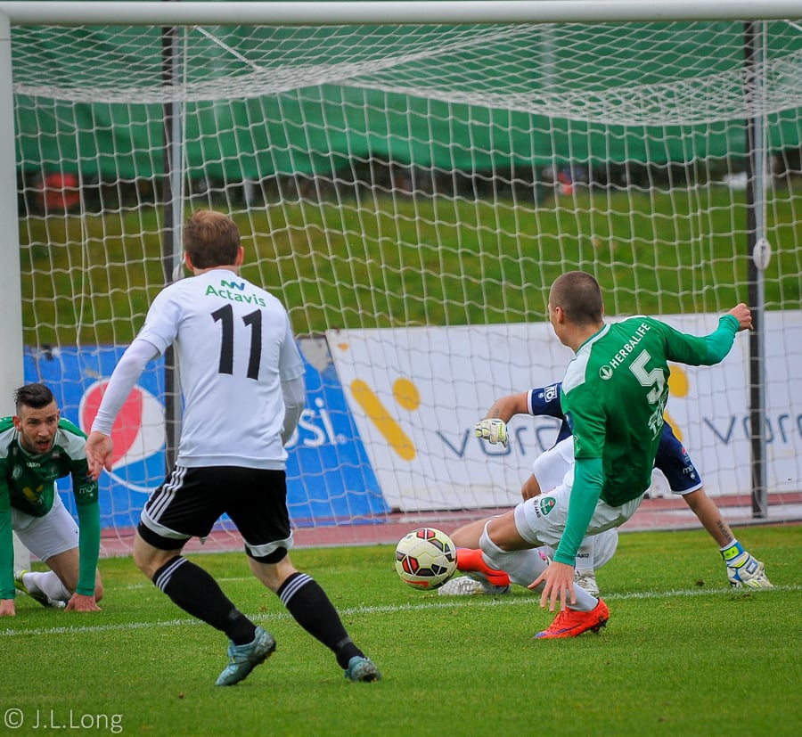 Atli Sigurjóns fær skotfæri utan teigs en neglir vel framhjá.