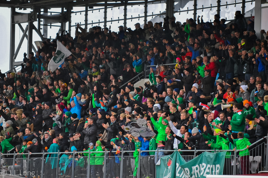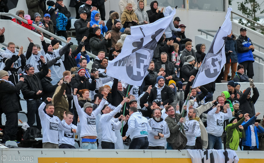 Mafían er mætt í gömlu stúkuna, gæti séð fleiri Hafnfirðinga fara þangað þegar líður á leik.