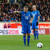 Ísland gerir tvær breytingar á liðinu frá því í leiknum á móti Kasakstan. Emil kemur inn fyrir Aron og Alfreð Finnboga fyrir Jón Daða.