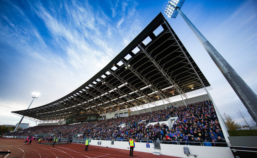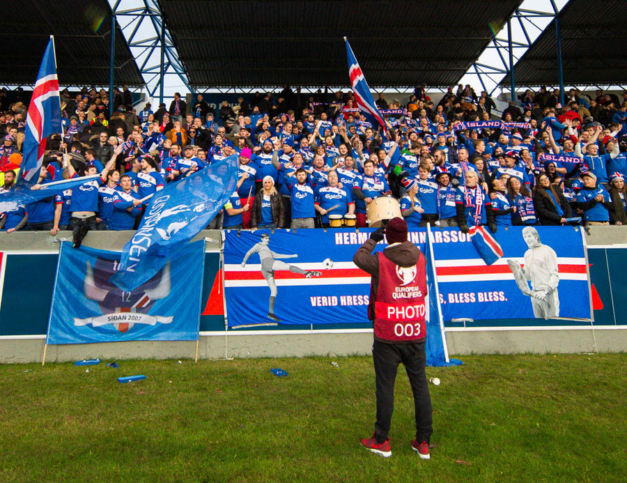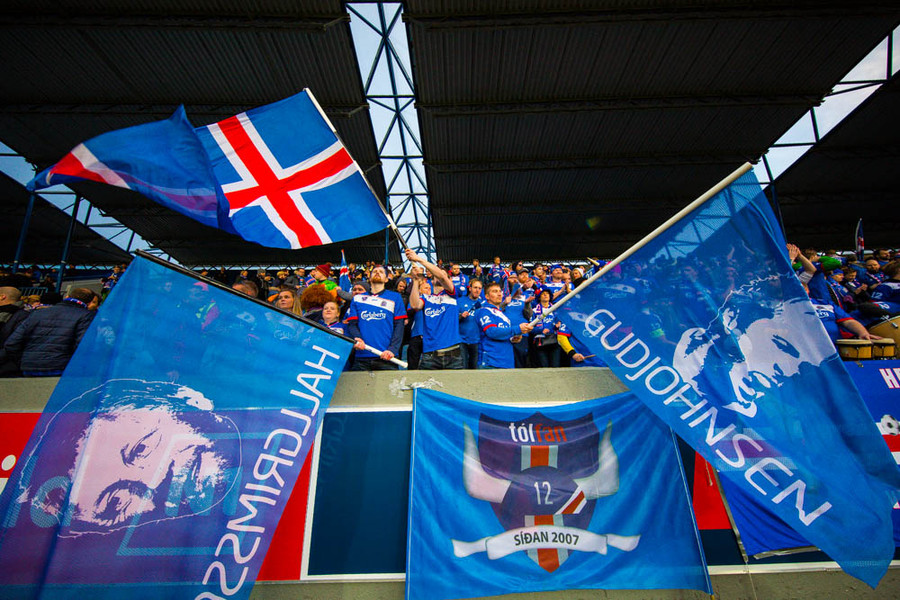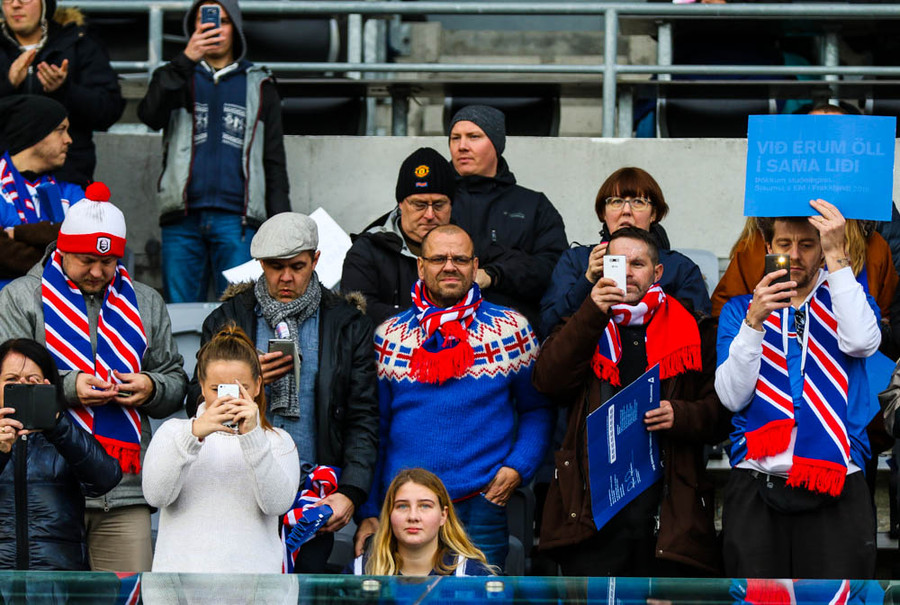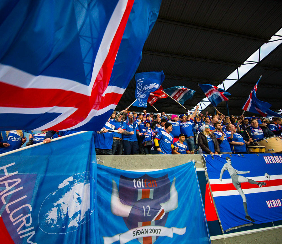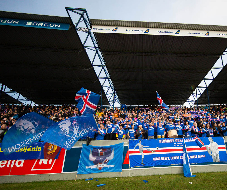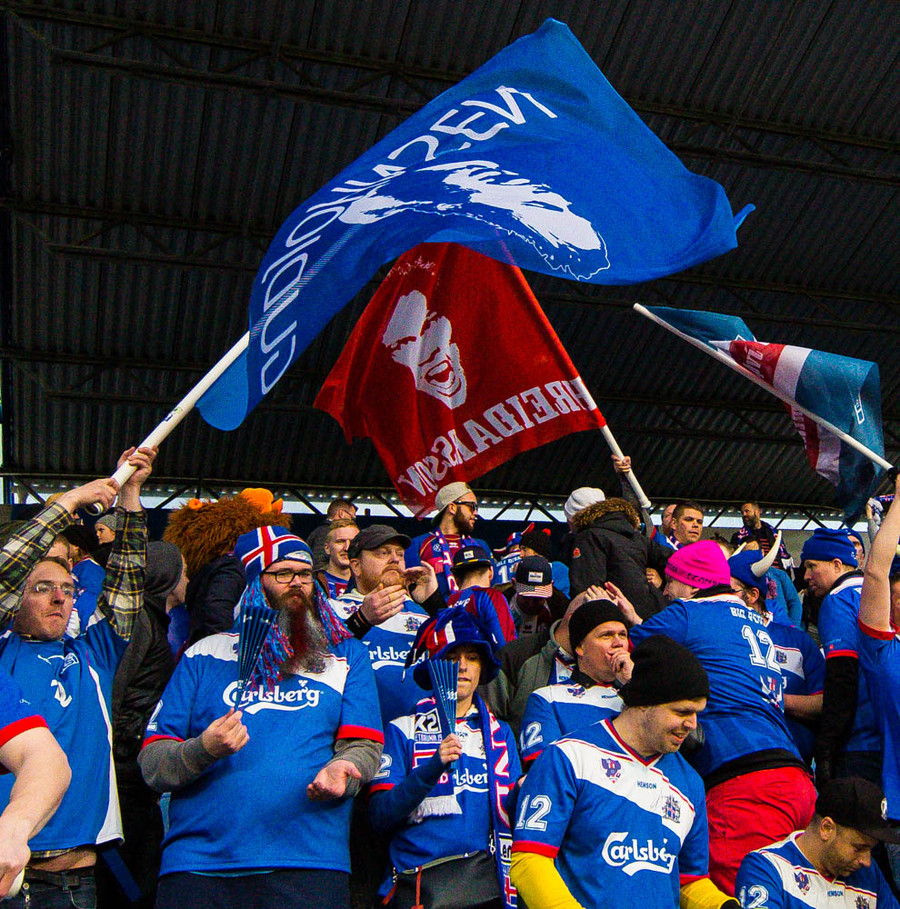 Tólfumenn setja þéttir í miðju stúkunni eins og venjulega. Þvílíkt eðal fólk sem þau eru.