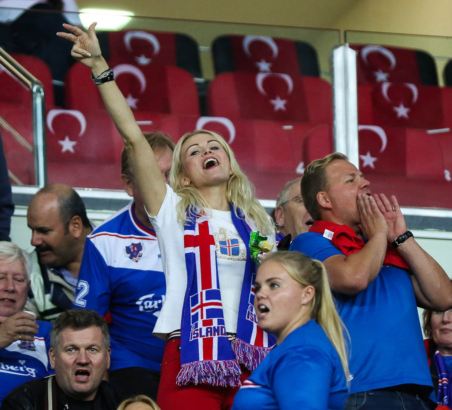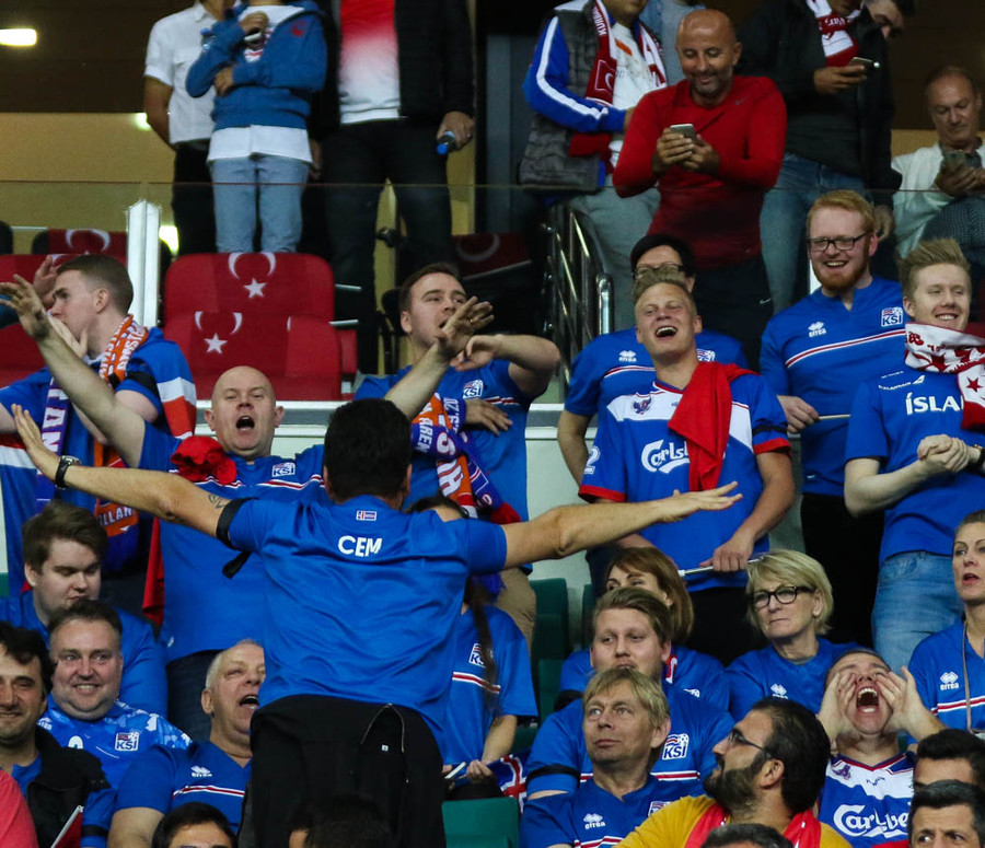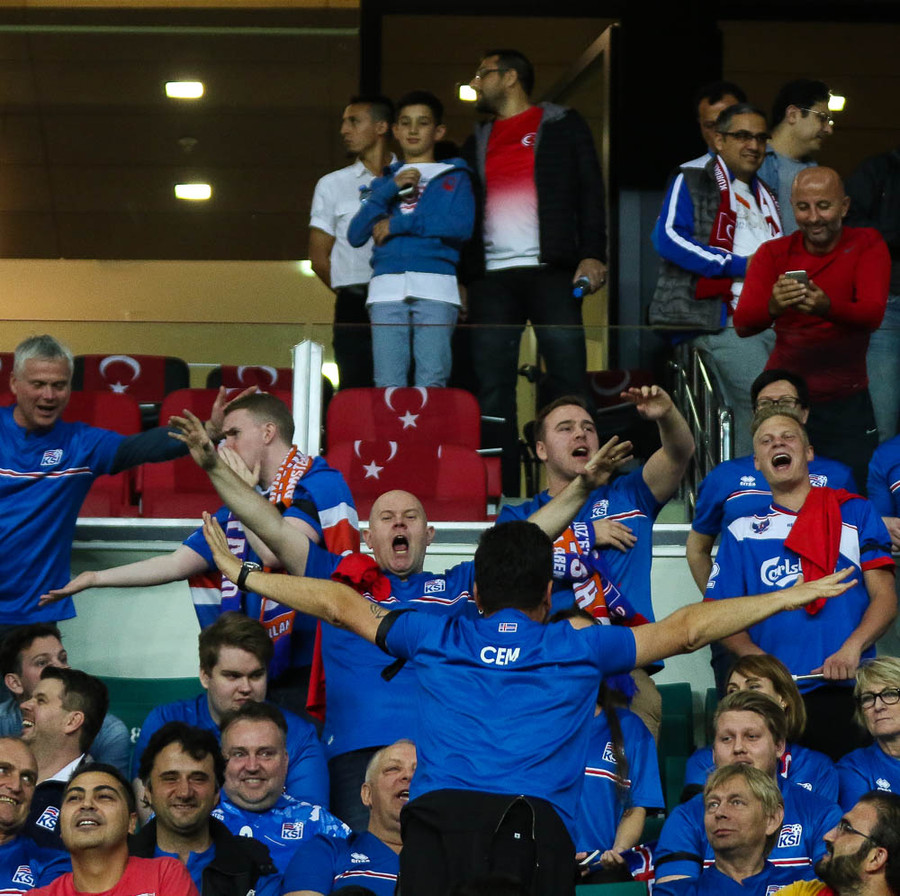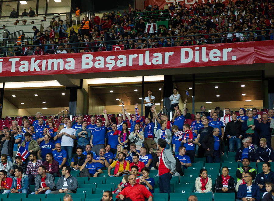Íslendingar ráða lögum og lofum eins og er og tyrknesku stuðningsmennirnir baula ansi hátt.