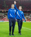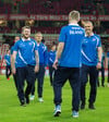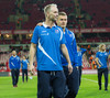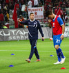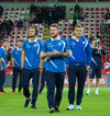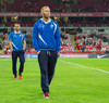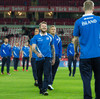 Var að fá létta gæsahúð. Strákarnir okkar voru að labba út á völlinn og það var baulað vel á þá. Lætin voru gríðarleg þó svo að einungis örfáar hræður séu mættar á völlinn. Þetta verður gjörsamlega TRYLLT þegar stúkan er orðin full. Fylgist endilega með á Fótbolta.net Snapchattinu, Fotboltinet, en þar fáið þið stemninguna beint í æð.