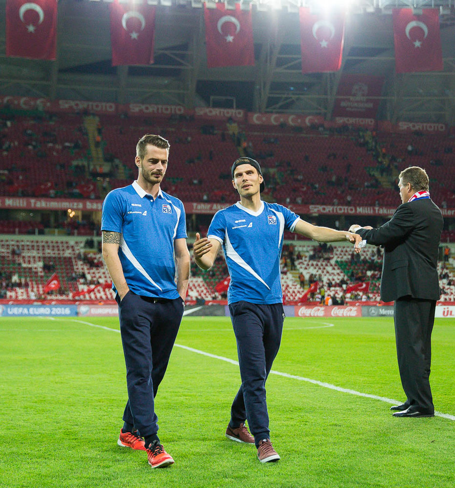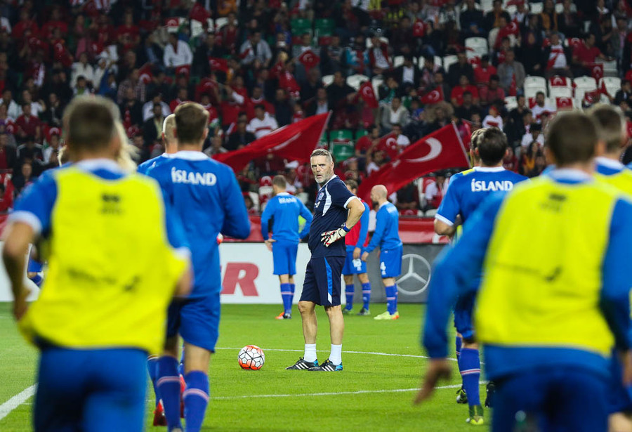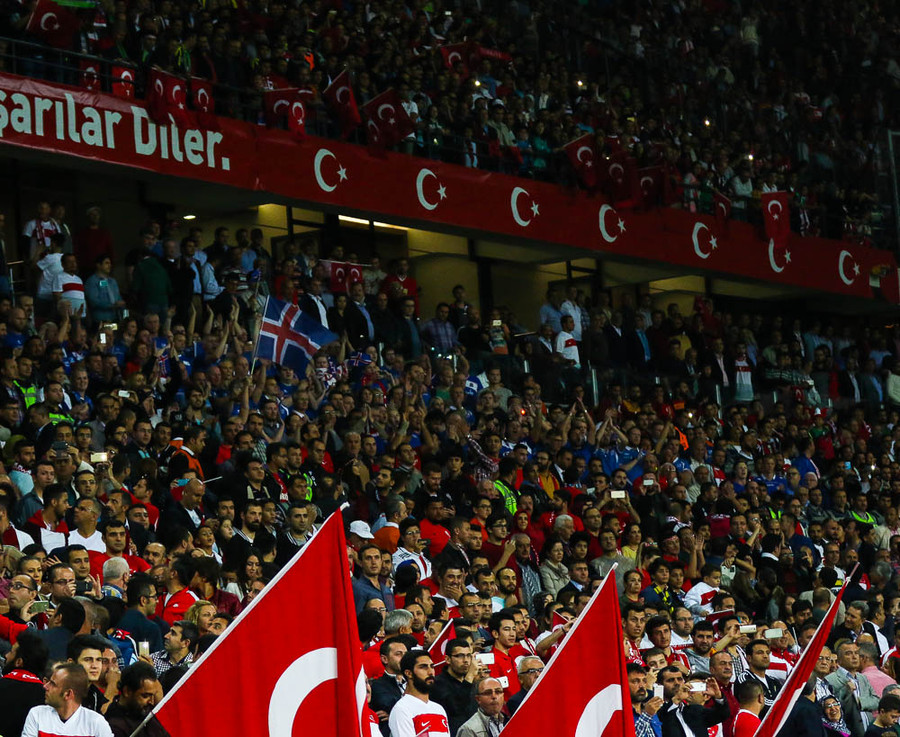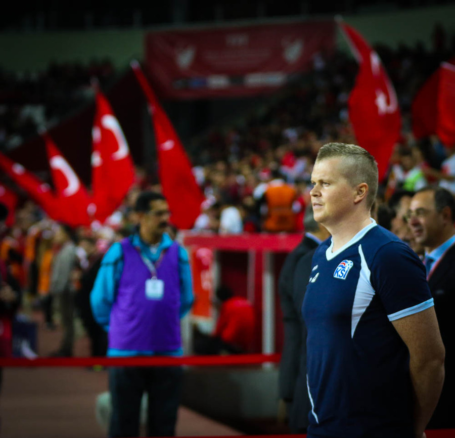 Það má búast við hreint út sagt ótrúlegri stemningu á vellinum hér í kvöld. Uppselt var á leikinn fyrir tveimur vikum og Torku Arena tekur 42.000 manns í sæti. Tyrkir eru þekktir fyrir að vera ansi líflegir á pöllunum og það er ekki von á öðru í kvöld, svo sannarlega ekki.