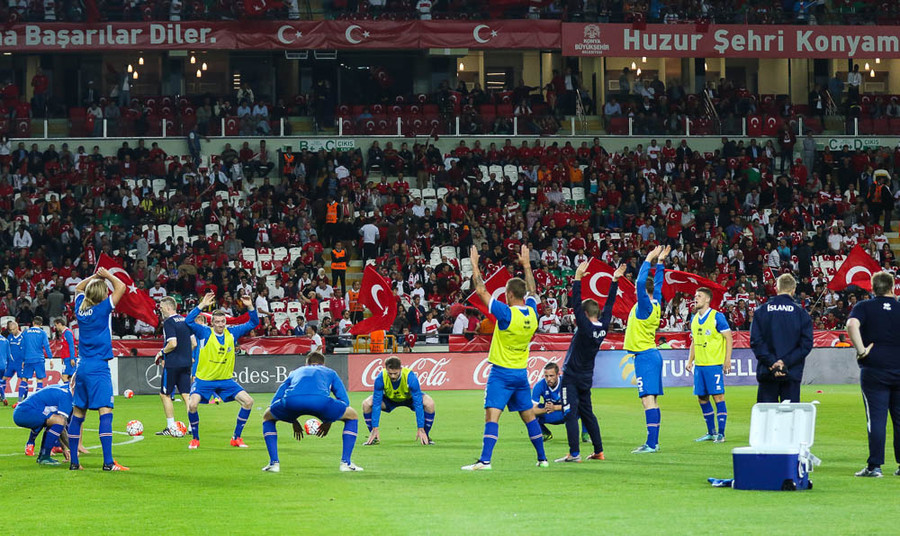 Þetta er einungis í þriðja skiptið sem Tyrkir spila landsleik hér í Konya, en þetta gæti vel orðið þeirra framtíðar heimavöllur. Áhuginn á liðinu hefur örlítið dregist saman svo þeir spila ekki lengur á hinum risastóra heimavelli Galatasaray í Istanbúl. Hér í Konya unnu Tyrkir frækinn 3-0 sigur gegn Hollandi á dögunum en gerðu einnig 1-1 jafntefli við Lettland.