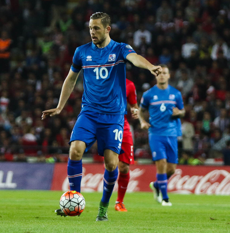 Gylfi Þór með bjartsýnisskot en boltinn flýgur yfir. Um að gera að reyna, hann hefur svo sannarlega skorað stórkostleg mörk í gegnum tíðina.. oftar en einu sinni og oftar en tíu sinnum.